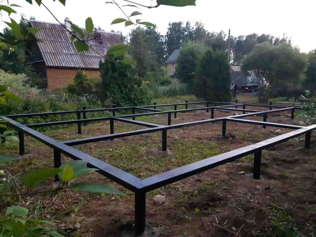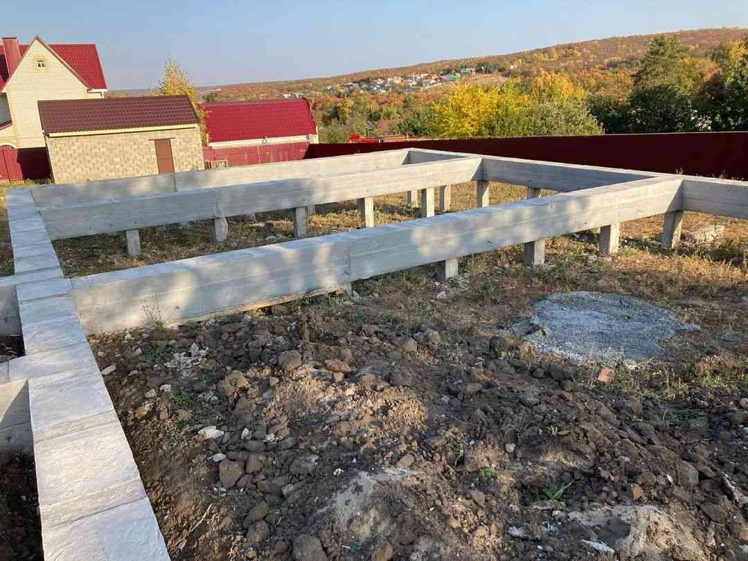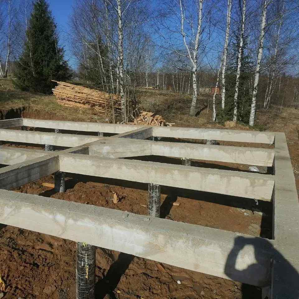 Ленточный фундамент на бетонных сваях